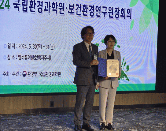 특히 국립환경과학원과 긴밀한 협조체계를 구축·유지하며, 지역사회 민간 검사기관의 분석능력 향상을 위한 기술교육 등을 실시해 환경분야 국제적 적합성 기반 구축, 국립환경과학원과 공동 연구 사업 추진을 통해 정책 수립에 기여한 공로를 인정받았다.