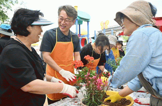 [뉴스맘]광주 서구는 1일 오전 화정3동 콩콩어린이공원에서 '우리는 꽃마을에 산다'를 주제로 폐화분 활용 골목길 가꾸기 및 반려식물 분양행사를 진행했다.