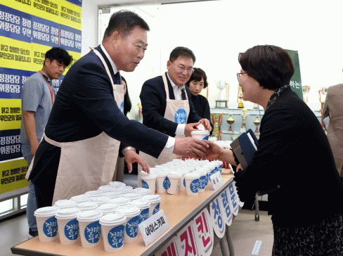 회의에 앞서 ‘군수가 전하는 청렴 소통 커피’ 나눔 행사를 열어 김산 군수가 직원들에게 직접 다양한 청렴메시지가 담긴 청렴 소통 커피와 간식을 나눠주며 직원들을 격려하고 청렴의 의미를 함께 다졌다.