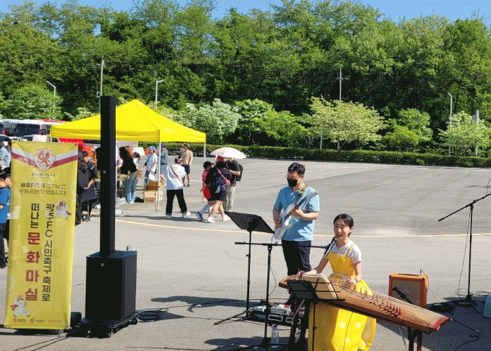 광주FC 홈경기가 있는 날에는 ‘스포츠와 함께 떠나는 문화마실’ 공연이 경기장 1매표소와 2매표소에서 다채롭게 열리고 있다. 대중적이고 흥미로운 버스킹, 퓨전국악, 전자바이올린과 전자첼로의 연주 등 다양한 장르의 공연을 선보이고 있다.