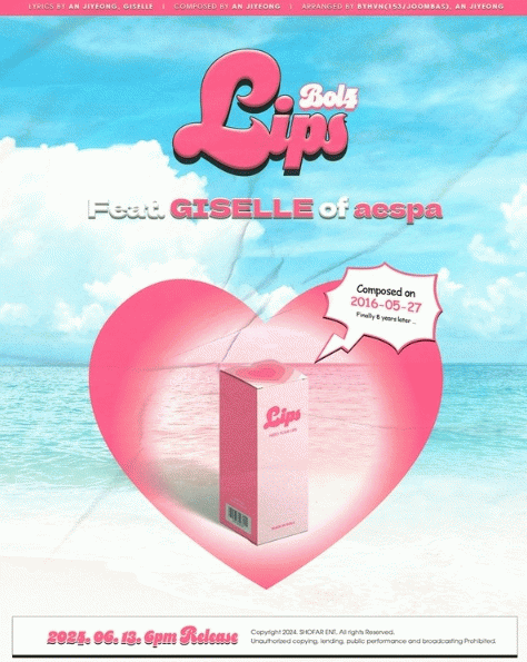 지난 3일 쇼파르엔터테인먼트는 공식 SNS를 통해 볼빨간사춘기 신곡 ‘립스(Lips)’의 티저 영상을 공개하며 베일에 싸여있던 ‘립스(Lips)’의 피처링 아티스트가 ‘에스파(aespa)’ 멤버 지젤임을 밝혔다.
