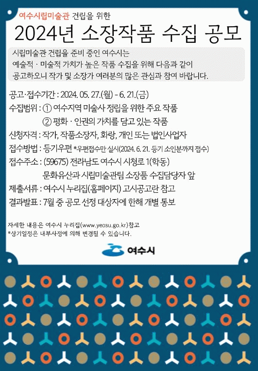 자세한 내용은 여수시 누리집 고시공고를 참고하거나 문화유산과 시립미술관팀에 문의하면 된다.