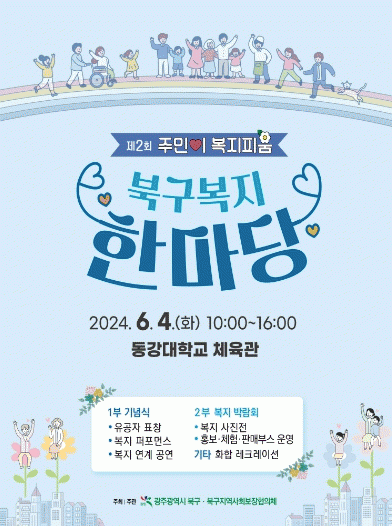 이외에도 복지기관·시설 36곳의 홍보·체험·자활제품 판매 부스를 비롯해 북구 27개 동 복지 특화 사업 성과전시회 등 복지 박람회 부대행사가 동강대학교 체육관 내·외부에서 지속 운영된다.