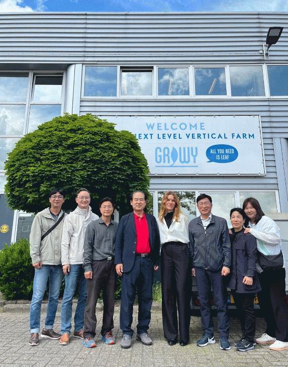 수출개척단은 와게닝겐 대학 방문에 이어 네덜란드를 대표하는 수직농업 상업화기업인 ‘그로이(Growy)’를 방문해 빅데이터와 인공지능 등을 활용한 로봇기반의 완전 자동화 농업 현장을 견학했다.