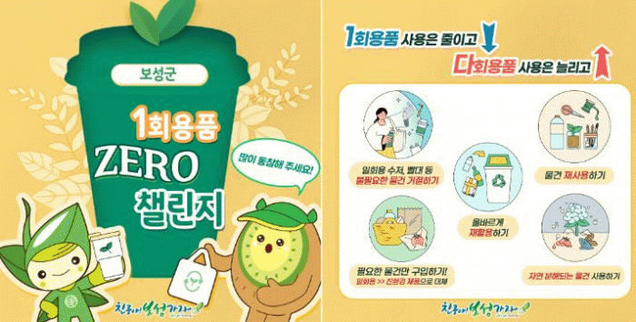 ‘제29회 환경의 날 일회용품 제로 챌린지’는 보건소 걷기 사업과 연계해 보성군민을 대상으로 진행되며, 모바일 앱 ‘워크온’을 통해 참여할 수 있다.
