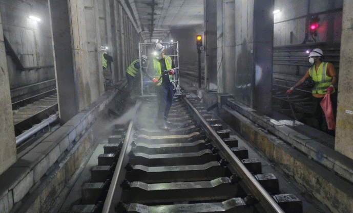 청소는 고압세척기와 세척제를 사용해 터널 선로 바닥, 벽체 등에 직접 고압 살수하는 방식으로 실시되며, 이를 통해 일반 청소로는 제거가 힘든 분진을 물로 씻어내 제거하고 배수로의 폐기물을 수거해 터널 내 환경을 정화하고 있다.