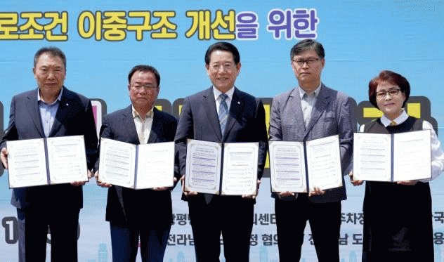 전남도와 광주지방고용노동청은 노동시장 이중구조 개선을 지원해 평등한 기회 속에서 전남 주도형 일자리 창출, 상생발전 지원체계 구축, 산업재해 예방 등으로 행복하고 안전한 일터를 조성할 것을 선언했다.