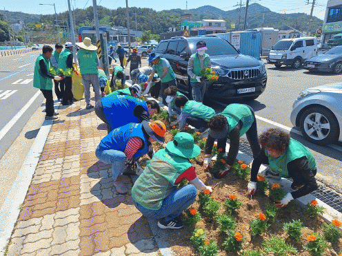 이날 면 직원과 새마을지도자·부녀회 등 자생단체 회원 등 60여 명은 나진 물양장 일원에 페츄니아와 메리골드 등 여름을 대표하는 꽃 5,400본을 식재, 꽃밭을 조성했다.