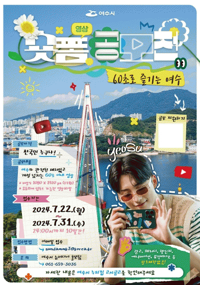 여수시에 관심 있는 대한민국 국민이라면 누구나 응모할 수 있으며, 여수의 다양한 섬, 전통, 문화, 관광지, 시정·시책 등을 다룬 재치 있고 개성 넘치는 내용을 1분 이내 영상으로 담아내면 된다.