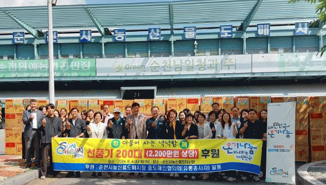 노관규 순천시장은 “중도매인협의회의 시원한 나눔에 감사드린다”며 “폭염과 열대야에 힘들 에너지 취약가구에 잘 전달하여 여름을 잘 이겨낼 수 있도록 하겠다”고 전했다.