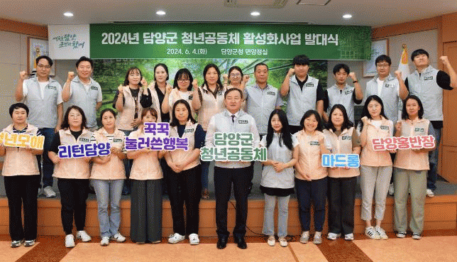 이병노 군수는 “이번 사업을 통해 청년들 간의 네트워크를 활성화하고, 다양한 분야의 사회참여를 통해 청년들이 담양에 안정적으로 정착하길 바란다”라며 “앞으로도 지역 내 청년공동체가 다양한 분야에서 성장할 수 있도록 적극 지원하겠다”라고 말했다.