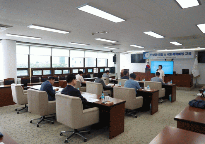 오전에는 ▲반부패 법령 강의(이해충돌방지법 청탁금지법 지방의회의원 행동강령 등) ▲청렴서약식을 실시하고, 오후에는 ▲4대 폭력(성희롱 성폭력 가정폭력 성매매)예방 교육을 진행하여 반부패 공직윤리의 함양과 더불어 4대 폭력에 대한 올바른 인식을 정립하는 계기가 됐다.