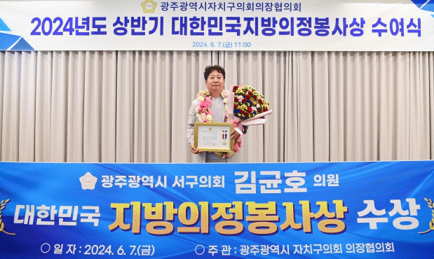 김균호 의원은 “앞으로도 공부하는 의원, 주민이 체감하는 선진 의정활동을 고민하고 궁극적으로는 지방자치 발전 과정에 주민이 중심이자 대표라는 점이 보다 깊이 체감될 수 있도록 더 노력하겠다. 지방의정봉사상 수여에 다시 한 번 깊은 감사를 전한다”고 소감을 전했다.