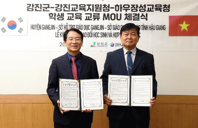 이번 업무협약은 온라인 화상회의로 진행됐으며 강진원 강진군수, 이병삼 강진교육지원청 교육장, 응웬 화이 튀 항 하우장성 교육장이 서명했다.