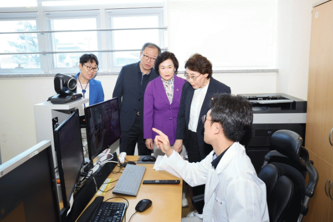이날 방문은 상주하는 공보의가 없는 보건소나 진료소를 찾은 환자들이 영상으로 만성질환 진료와 약 처방을 받는 과정을 들여다보고 종사자들의 애로사항 등 현장의 목소리를 청취하기 위해 이뤄졌다.