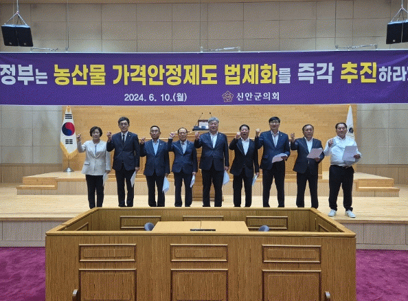 신안군의회는 결의문을 통해 최근 농산물가격의 불안정으로 농가가 심각한 경영 위기에 처해있다며, 농업의 지속가능성 확보와 식량안보 강화를 위한 ‘농산물 가격안정제도 법제화’를 주장했다.