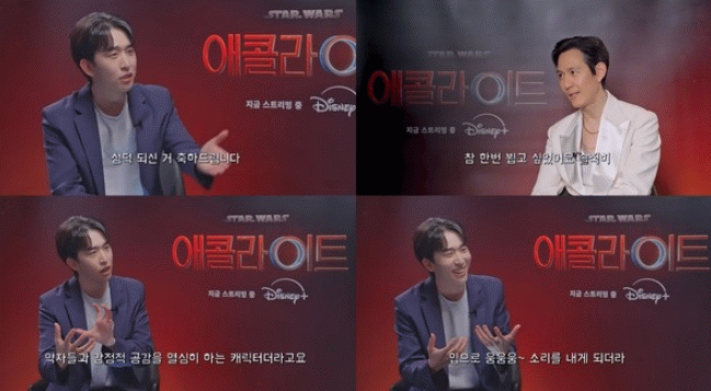 이승국은 지난 10일 자신의 유튜브 채널 '천재이승국'을 통해 최근 디즈니+에서 스트리밍 중인 '스타워즈' 시리즈 '애콜라이트(The Acolyte)'의 주인공 이정재와 진행한 인터뷰 영상을 공개했다.