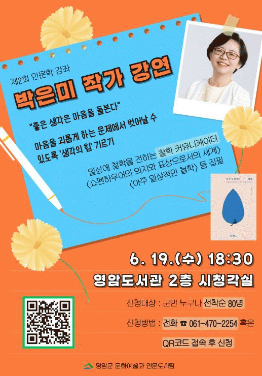 박 작가의 철학 강좌는 현장 신청 포함, 80명을 선착순으로 모집한다.