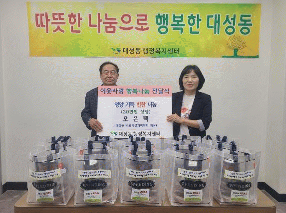 최희선 대성동장은 “다른 복지대상자들에 비해 소외되기 쉬운 중장년 1인 가구를 위해 나눔을 실천해주셔서 감사드리며 소중한 마음들이 대성동 곳곳에 전해지도록 직원들과 함께 더욱더 노력하겠다”고 말했다.