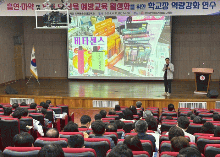 12일 시교육청에 따르면 이번 연수는 ‘It's our golden time! 청소년 신종 담배 / 신종 마약 노출 예방’을 주제로 진행했다. 청소년 담배 사용 및 신종 마약류로부터 학생들을 보호하고, 학교 예방교육 활성화를 위한 학교장의 역량을 강화에 목적을 뒀다.