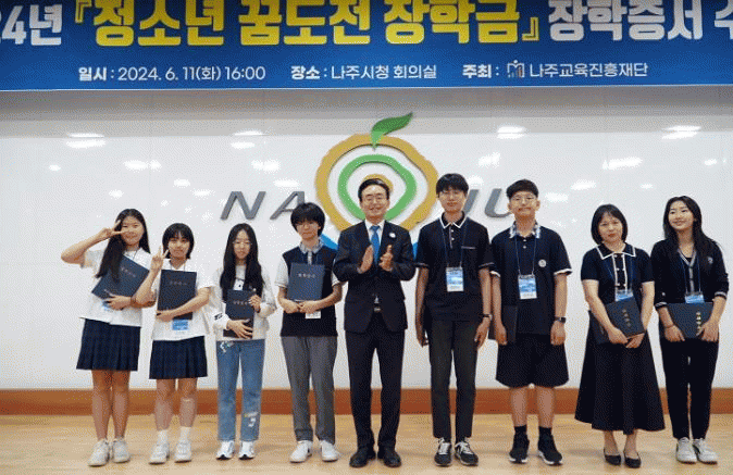 전라남도 나주시는 나주교육진흥재단에서 ‘청소년 꿈 도전 장학금’을 관내 중·고교생 40명에게 지급했다고 12일 밝혔다.