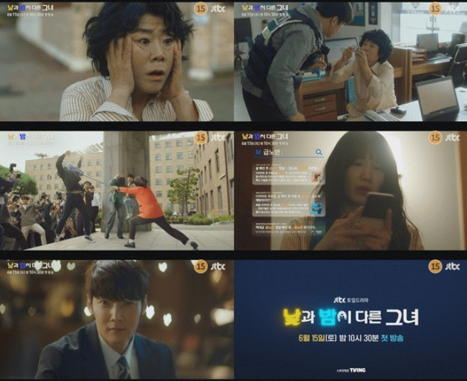 시키는 일은 모두 가능한 레전드 인턴과의 달콤살벌한 이중생활이 펼쳐질 JTBC 새 토일드라마 ‘낮과 밤이 다른 그녀’는 오는 15일(토) 밤 10시 30분에 첫 방송된다.