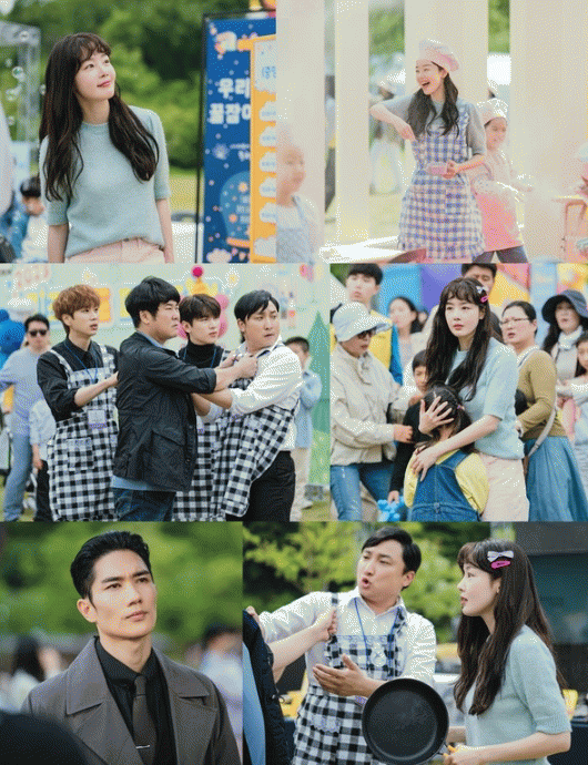 공개된 사진 속에는 때아닌 소란이 일어난 키즈 푸드 페스티벌의 생생한 풍경이 담겨 있다. 목마른 사슴 직원들 곽재수(양현민 분), 양홍기(문동혁 분), 이동희(재찬 분)가 한 남성과 멱살잡이를 하고 있는 것.