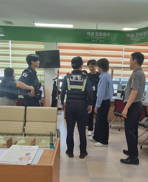 이번 훈련은 민원실 내 민원응대 과정에서 발생가능한 폭언.폭행 등 비상상황에 대비하기 위해 특이민원 상황을 가정하여 진행됐다.