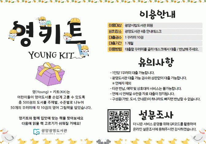 ‘영키트’는 간편하게 조리할 수 있는 밀키트와 같이 영어 그림책을 주제별, 수준별로 구성해 손쉽게 영어원서를 접할 수 있도록 한 맞춤형 책 꾸러미이다.