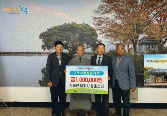 장동면 지역사회보장협의체는“지역의 복지 취약계층에 관심과 지원을 아끼지 않는데 진심으로 감사드린다”며 “전달해 주신 성금은 복지사각지대에 놓인 이웃을 위해 소중히 사용하겠다”고 전했다.