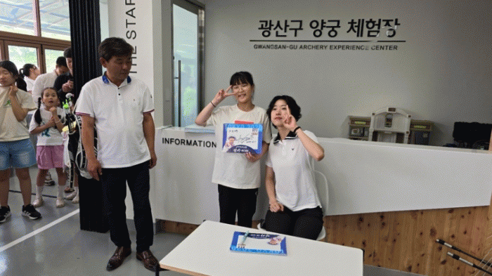 광산구 양궁체험장에서는 안산, 기보배 등 세계적 선수들을 지도한 김성은 감독에게 직접 양궁을 배우고, 활을 쏘는 체험을 즐겼다.