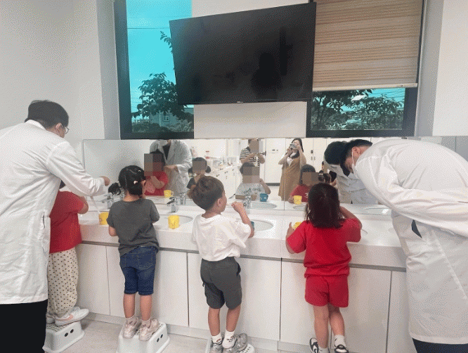특히 양치질이 끝나면 구강검진 후 충치 예방에 좋은 불소도포를 시행하고 가정용 불소양치용액과 어린이 양치컵 세트도 함께 제공하고 있다.