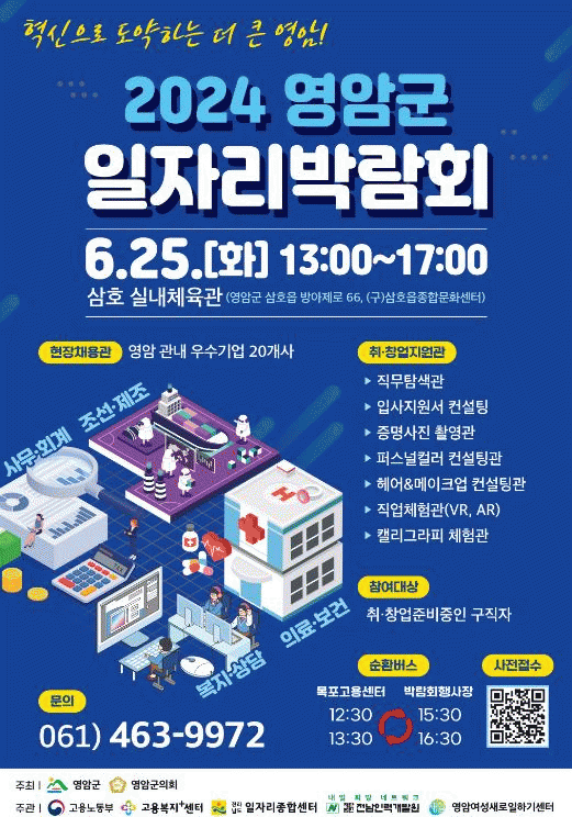 영암군 관계자는 “구인과 구직의 축제인 일자리 박람회에 많은 관심과 참여 바란다”고 밝혔다.