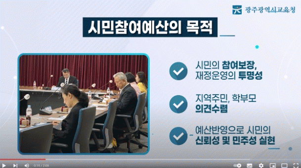 18일 시교육청에 따르면, 홍보 영상은 시민참여예산제에 대한 시민들의 이해를 높여, 예산편성 과정에 시민들의 소중한 의견이 적극 반영할 수 있도록 제작됐다. 시민참여예산제의 목적과 참여방법, 제안한 의견이 어떻게 반영되는지 시민들이 이해하기 쉽게 만들어졌다.