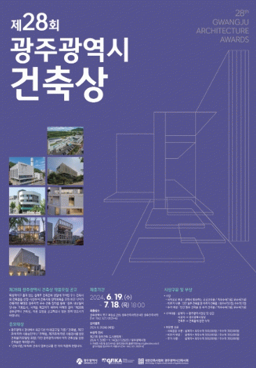 작품 접수는 광주시건축사회 누리집 공지사항에서 응모신청서를 내려받아 관련 서류와 A0사이즈 작품축소판(판넬)을 오는 7월 18일까지 건축사회 사무국으로 방문해 접수하면 된다.