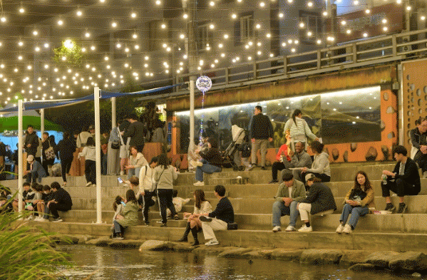 맑게 흐르는 시냇물과 함께 해변이 연상되는 모래밭이 연출된 ‘개울길 광장’은 관광객이 더위를 피하며 여유를 즐기기 제격이다.