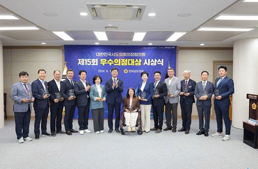 우수의정대상은 지역주민들의 복리 증진과 지방자치 발전에 기여한 도의원에게 대한민국시도의회의장협의회에서 수여하는 상으로, 올해로 15회째를 맞았다.