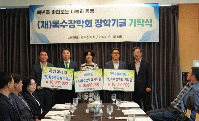 광주광역시소방안전본부는 18일 광주신세계 등 지역 기업과 의료기관 5곳에서 장학금 5000만원을 재단법인 록수장학회에 기탁했다고 밝혔다.