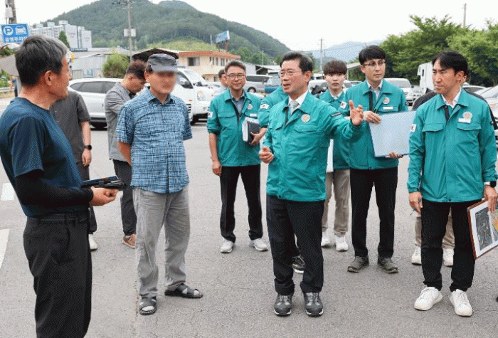 정 시장은 집중호우 시 배수 현황을 재점검하고 노후화된 정자 철거, 배수로 위 고무 재질 패드 교체 등 개장 전 준비를 철저히 할 것을 지시했다.