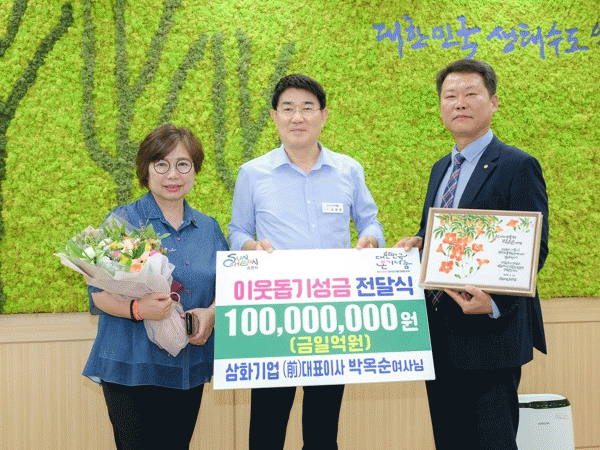 한편, 순천시 서면에 위치한 삼화기업은 1994년 설립하여 콘크리트 타일, 기와, 벽돌을 제조하는 업체로 지난 2022년에도 박옥순여사 구순기념으로 5천만원을 기부한 바 있다.