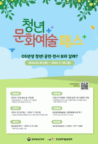 자세한 내용은 온라인 협력 예매처 인터파크, 예스24 누리집 또는 청년문화예술패스 고객센터에서 확인할 수 있다.