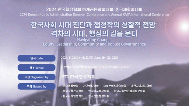 ‘한국사회 시대 진단과 행정학의 성찰적 전망’이라는 주제로 미래를 위한 전략적 방향성과 행정학적 과제들을 모색해 한국 사회의 발전을 위한 방안을 고민하는 장으로 마련된다.