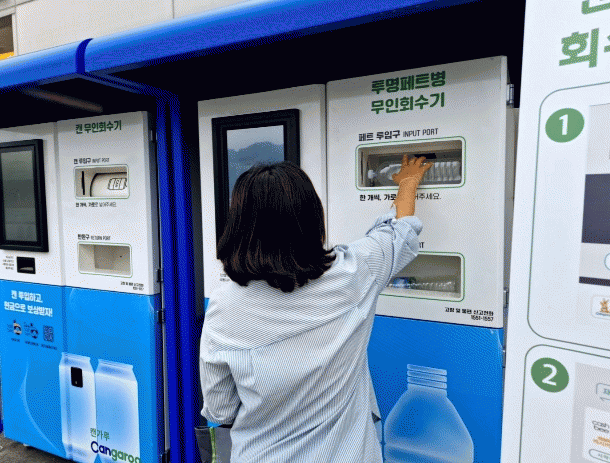 재활용품 무인수거자판기에 투입 가능한 품목은 음료수 캔(통조림 캔이나 망가진 캔 제외)과 투명 페트병이다.
