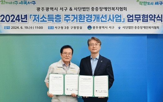 [뉴스맘]광주 서구는 19일 오전 (사)중증장애인복지협회와 관내 장애인 세대 등 주거취약계층 집수리 지원을 위한 업무협약을 체결했다.