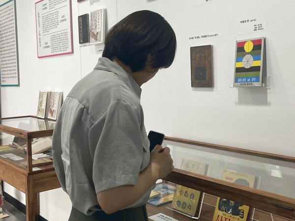 1926년 일본 발간 나카무라 료헤이의 '조선 동화집'을 포함해 마해송, 윤석중, 강소천 작가의 초판본 그램책 표지를 인쇄한 나무 미니 패널 책도 볼 수 있다.