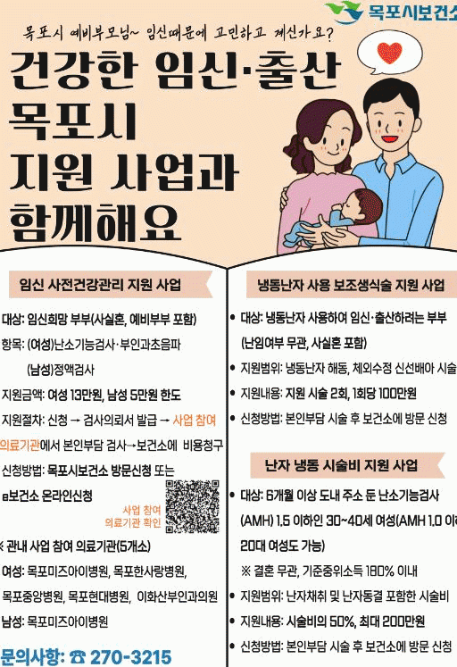 자세한 사항은 목포시보건소 모자보건실로 문의하면 된다.