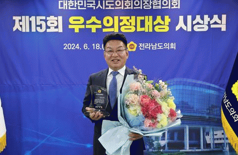 한편, 대한민국시도의회의장협의회에서 수여하는 '우수의정대상'은 모범적인 의정활동 사례를 널리 알려 지역주민의 삶의 질 향상과 지방자치 발전에 기여하고 의정활동을 격려하고자 엄격한 심사를 통해 선정되는 권위 있는 상으로, 올해로 15회째를 맞았다.