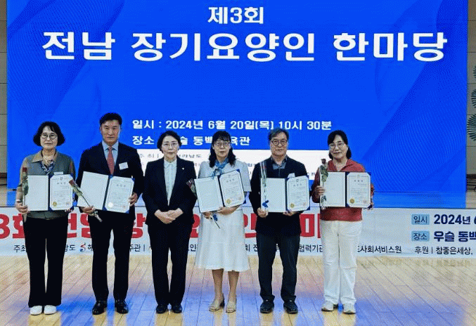 이상심 전남도 보건복지국장은 격려사를 통해 “도내 장기요양기관이 서로 교류하고 화합해 양질의 돌봄서비스를 제공하도록 힘쓰는 계기가 되길 바란다”고 말했다.