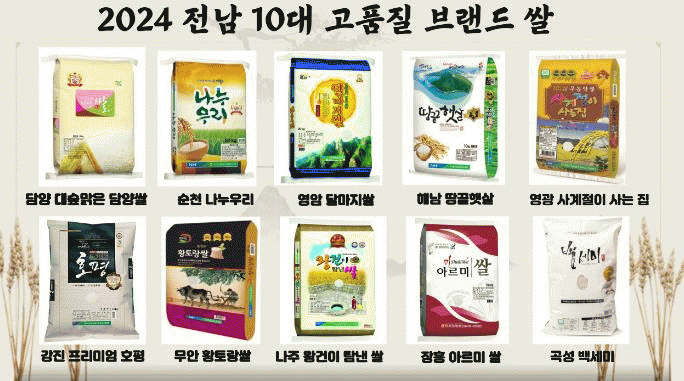 또 ▲최우수상에 순천 ‘나누우리’ ▲우수상에 영암 ‘달마지쌀’, 해남 ‘땅끝햇살’, 영광 ‘사계절이 사는 집’ ▲장려상에 강진 ‘프리미엄호평’, 무안 ‘황토랑쌀’, 나주 ‘왕건이 탐낸쌀’, 장흥 ‘아르미 쌀’, 곡성 ‘백세미’가 선정됐다.