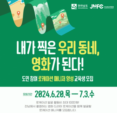 교육은 7월 13~15일 광양 락희호텔에서 진행된다. 현장에서 실제로 활동하는 전문 로케이션매니저의 생생한 이야기를 들을 수 있는 특강과 사진 촬영, 촬영지 선정 방법 등 기본 로케이션 교육으로 구성됐다.